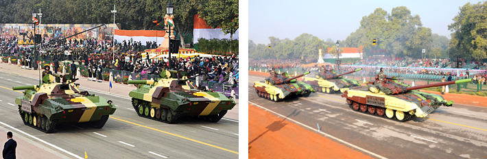(Left) ICV BMP-II (Sarath); (Right) Tank T-72M1 Ajeya.