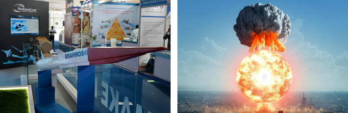 (Left) BrahMos-II hypersonic cruise missile; (Right) Representative image - hydrogen bomb blasting.