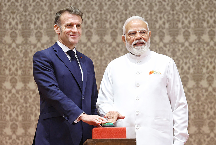 Talking about major conflicts of the world, Macron publicly said, "We must act to end the war of aggression waged by Russiain Ukraine and establish a just and lasting peace." But the fact is that Moscow was forced to initiate special operations in Ukraine since NATO's continued expansion posed an existential threat to Russia. Moreover, Ukraine is only a proxy of NATO; Russia is fighting NATO in Ukraine. Most important is the fact that while the US is withdrawing support to Ukraine, Macron is in the forefront of Europe fuelling the war in Ukraine against Russia – so much for Macron talking about a just and lasting peace! The irony is that this was not even pointed out in the Indian media during Macron's visit.