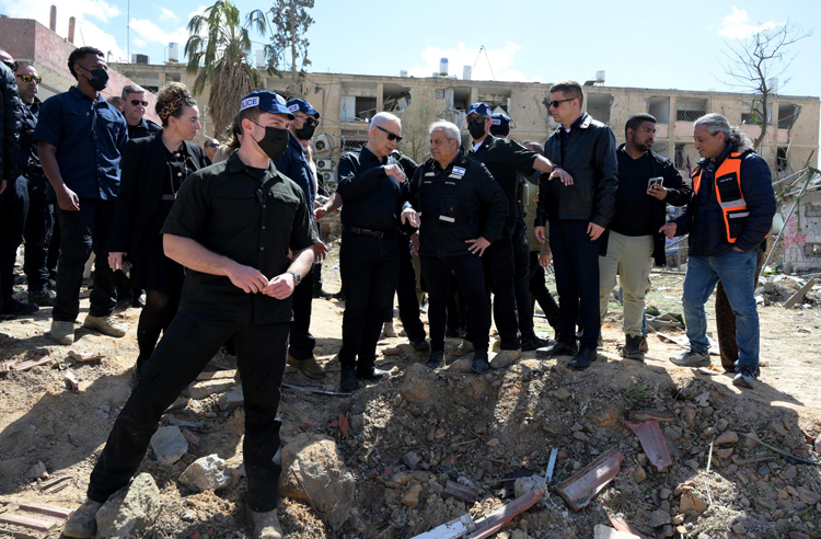 Israel Prime Minister Benjamin Netanyahu visiting the site of Iranian missile hit in Dimona.