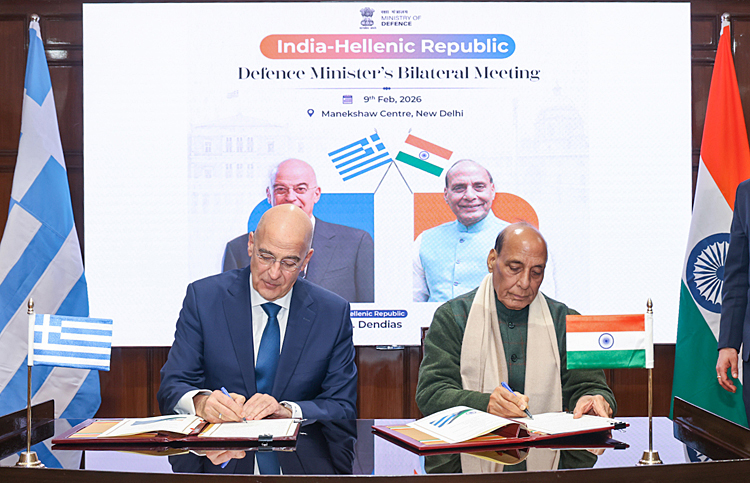 Defence Minister Rajnath Singh and Minister of National Defence of Hellenic Republic, Nikolaos-Georgios Dendias exchanged the Bilateral Military Cooperation Plan 2026, in New Delhi on February 9, 2026.