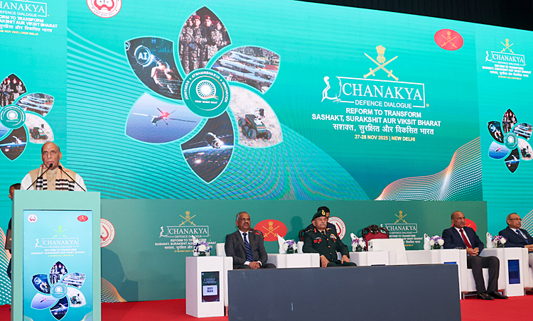 Defence Minister unveiled key Green and Digitisation initiatives and delivered a special address on Defence Reforms for a Sashakt, Surakshit aur Viksit Bharat. He emphasised that the Chanakya Defence Dialogue is a vital forum where the Indian Army’s operational experience merges with strategic thinking to shape future-ready policies. He noted that the reforms are a strategic necessity amid shifting global power centres, blurred boundaries between peace and conflict and expanding domains of warfare including cyber, space, information and cognitive influence. He underlined India’s growing global role, driven by economic strength, technological capability and principled foreign policy. Reforms, resilience and modernisation, he said, must strengthen defence, economy and society, with the armed forces as the strongest pillar of national security and stability. Stressing the government’s focus on capability enhancement, infrastructure, technology, Atmanirbhar Bharat and welfare of soldiers and veterans, he added that a strong, secure and developed India contributes to global stability, ethical use of emerging technologies and humanitarian values. He commended the Dialogue’s rich deliberations and affirmed that such platforms deepen strategic foresight and guide India’s journey towards a confident and future-ready Bharat.