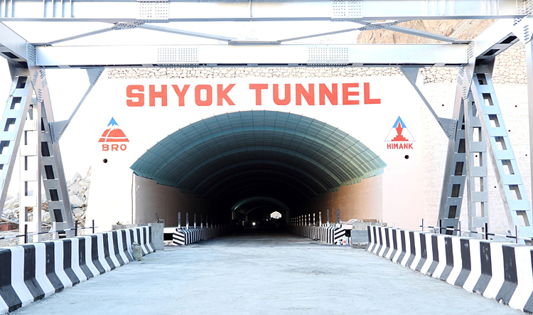 The strategic Shyok Tunnel on Darbuk-Shyok-Daulat Beg Oldie Road in Ladakh among the projects inaugurated to significantly improve last-mile connectivity to remote villages & forward military locations
